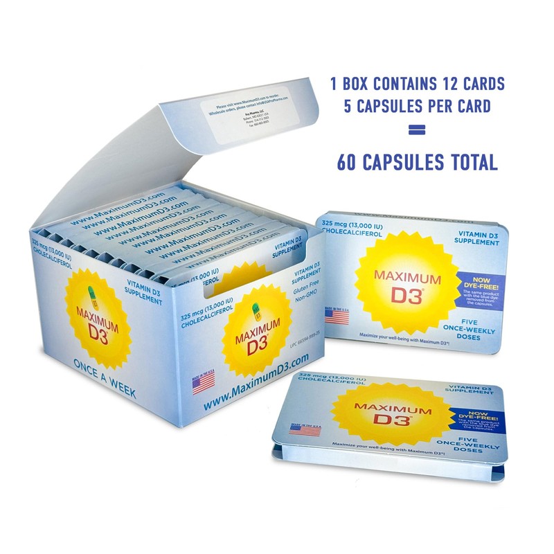 Maximum D3 13,000 IU Box, 60 Capsules Total (12 Cards/Box x 5 Capsules per Card), 60-Weeks Supply [Packaging May Vary]