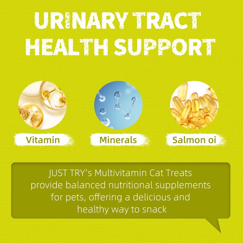 Just Try 13.4 OZ Cat Multivitamin Crunchy Chews Treats for Health and Immune Cat Joint Support Skin & Coat & Digestion Vitamins Supplements Biscuits Snacks
