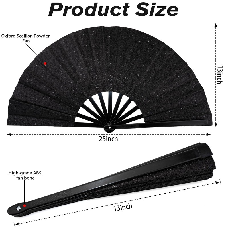 13" Glitter Large Rave Fans Clap Fans for Line Dancing Folding Clack Handheld Foldable Decorative Fans Hand Fan for Dance, EDM Music Festivals & Parties(Black)