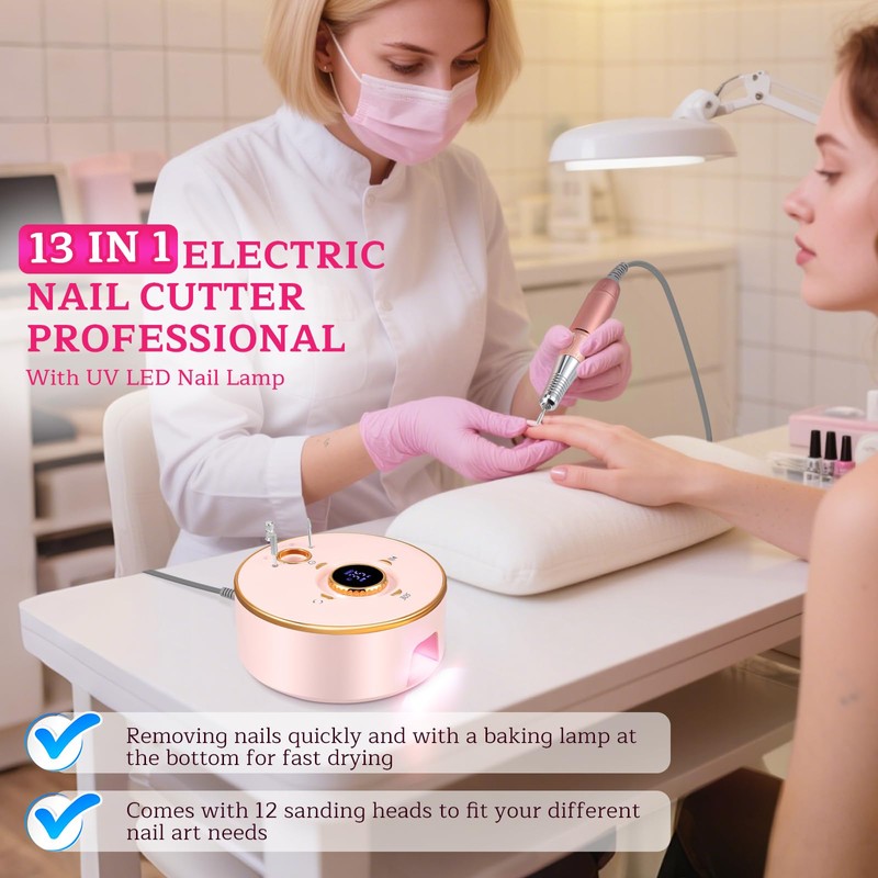 - 【 Komplettes Zubehör, multifunktional 】Das 13-in-1 Set enthält einen Keramikbohrer, 6-Schleifspitzen, 5-Polieraufsätze, 6-Schleifbänder und eine Bedienungsanleitung (englische Sprache nicht garantiert). Der Nagelschneider für Gelnägel ist einfach zu verstauen, da Bohrer und Handstück auf dem Gerät aufbewahrt werden können. Ideal für Maniküre Set elektrisch und Pediküre Set elektrisch.
