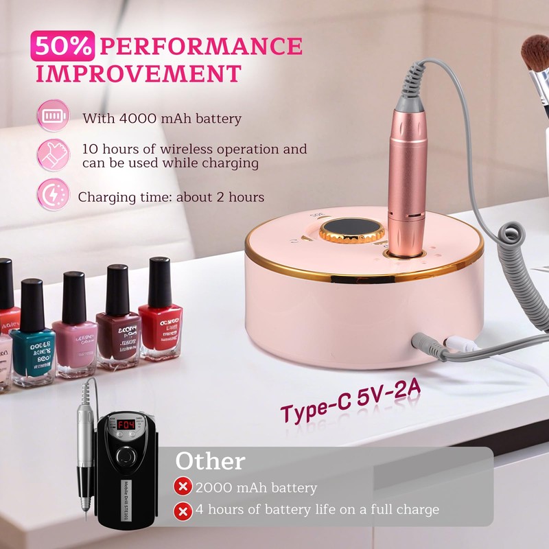 ✔ Diese hochwertige elektrische Nagelfeile ist ein unverzichtbares Werkzeug für professionelle Nagelpflege zu Hause. Mit einer beeindruckenden Leistung von 35.000 Umdrehungen pro Minute und einem leistungsstarken 4000-mAh-Akku ermöglicht sie bis zu 10 Stunden kabelloses Arbeiten.