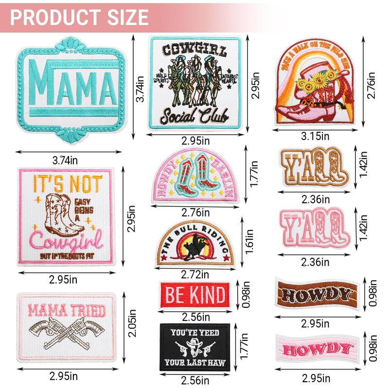 - Embroidery Patch Includes: The Hat Patches 13PC Western set features a variety of Western-themed designs, including cowboy boots, hats, horseshoes, and more. These patches bring the spirit of the Old West to your wardrobe, perfect for those who love Western culture.