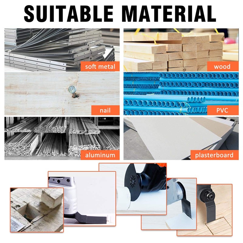 - 🛠Various Applications: The multi tool accessories can be used while doing home repairing, workshop or other place, such as sawing or cutting metal/wood/plastic, sanding hardwood, removing paint, rasping and grinding cement and so on.