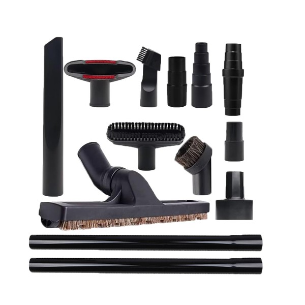 13 Pcs Universal Vacuum Attachment & Brushes Kit for Shop Vac Accessories, 2 1/2" to 1 1/4" and 1 7/8" to 1" Hose Adapter, Horse Hair Brush, Extension Wand, Flexible Crevice Tool