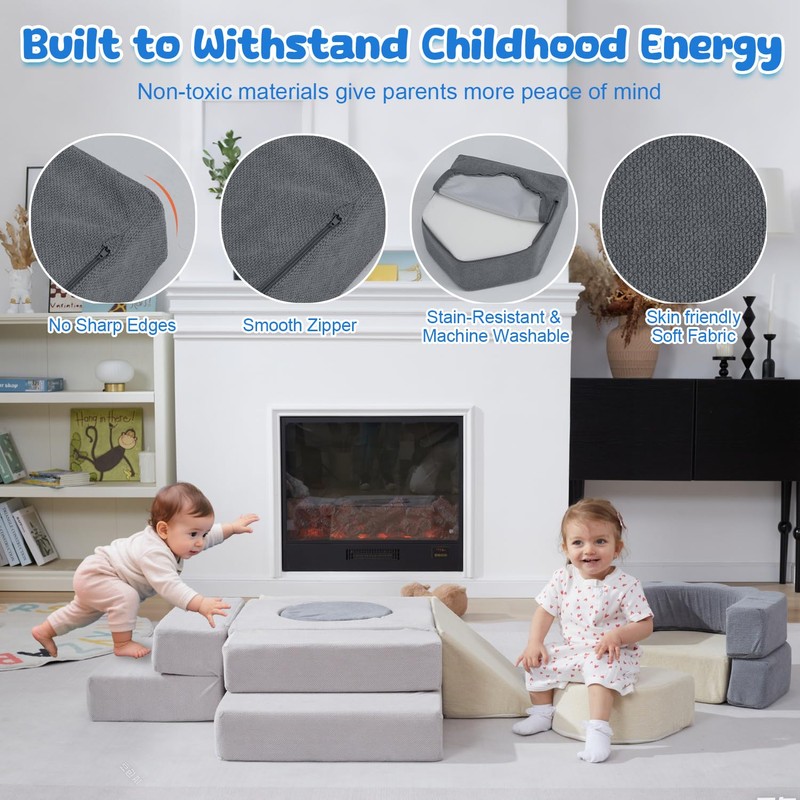 Safety is our top priority. Crafted with high-resilient foam and covered in child-safe, durable fabric, our climbing toy provides a soft and secure surface for climbing, jumping, and lounging. The removable, machine-washable covers ensure easy cleaning and maintain a fresh, hygienic play environment. The non-fading, non-shrinking material guarantees long-lasting quality, withstanding the rigors of daily play.