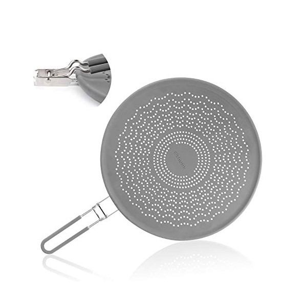 - FOLDABLE HANDLE. Our foldable handle makes the splatter screen easy to storage. The rubber handle will allow added grip comfort and slip proof maneuvering.
