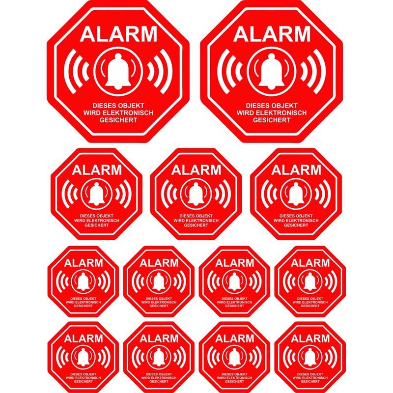 - Warning sticker for identifying monitoring with an alarm system. Protect your property from potential thieves, burglars, stalkers or other uninvited guests with these warning stickers. Defend against crime and warning of unauthorised access