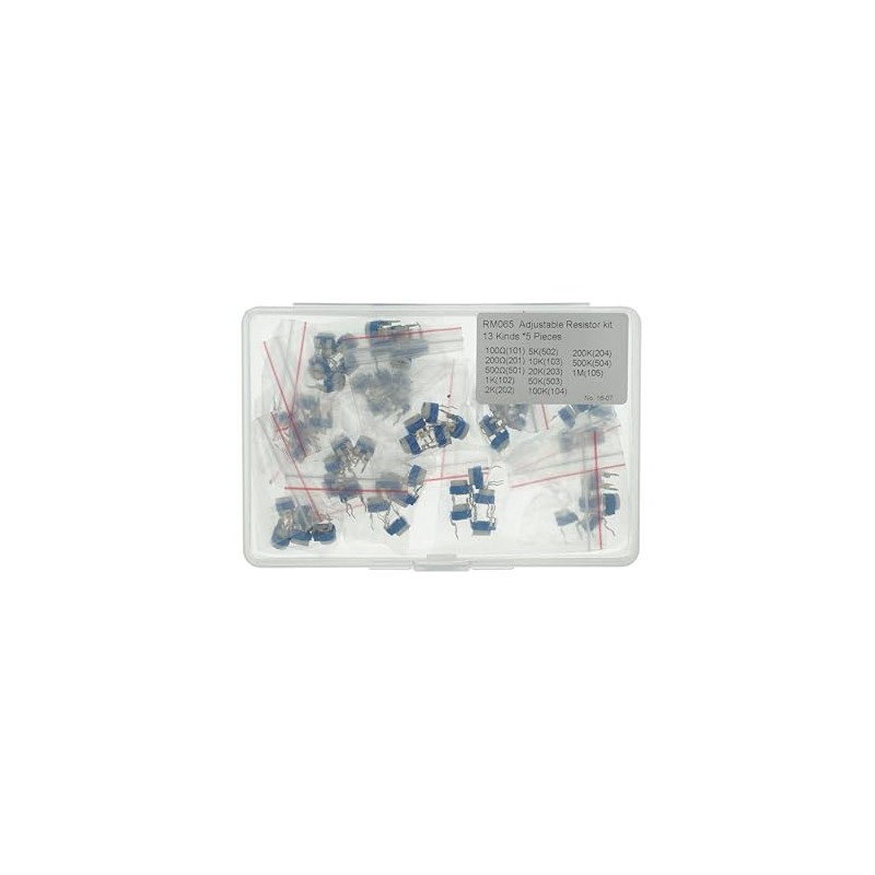13 Values x 5PCS=65PCS RM065 Horizontal Blue White Adjustable Resistor kit (100Ω(101) 200Ω(201) 500Ω(501) 1K(102) 2K(202) 5K(502) 10K(103) 20K(203) 50K(503) 100K(104) 200K(204) 500K(504) 1M(105))