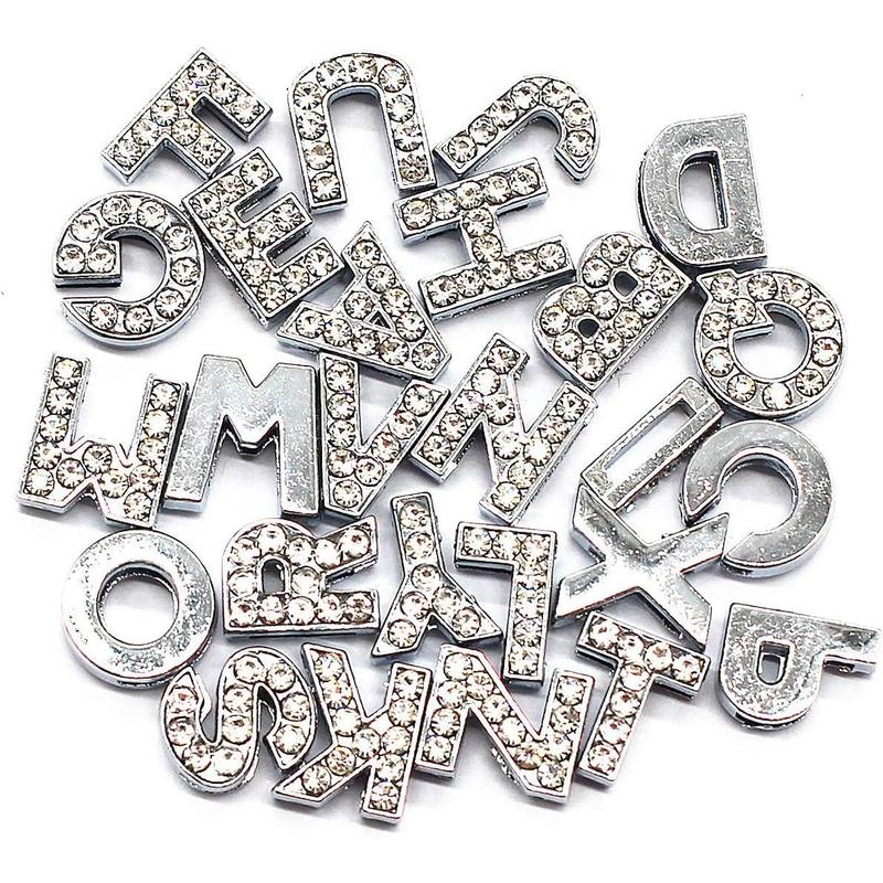 130 count A-Z Full Rhinestones Charms 8mm Slide Alphabet Letters for DIY Slide Wristbands Bracelets,Hair Clips, Making Charms, 130 count - Color: 130PCS A-Z