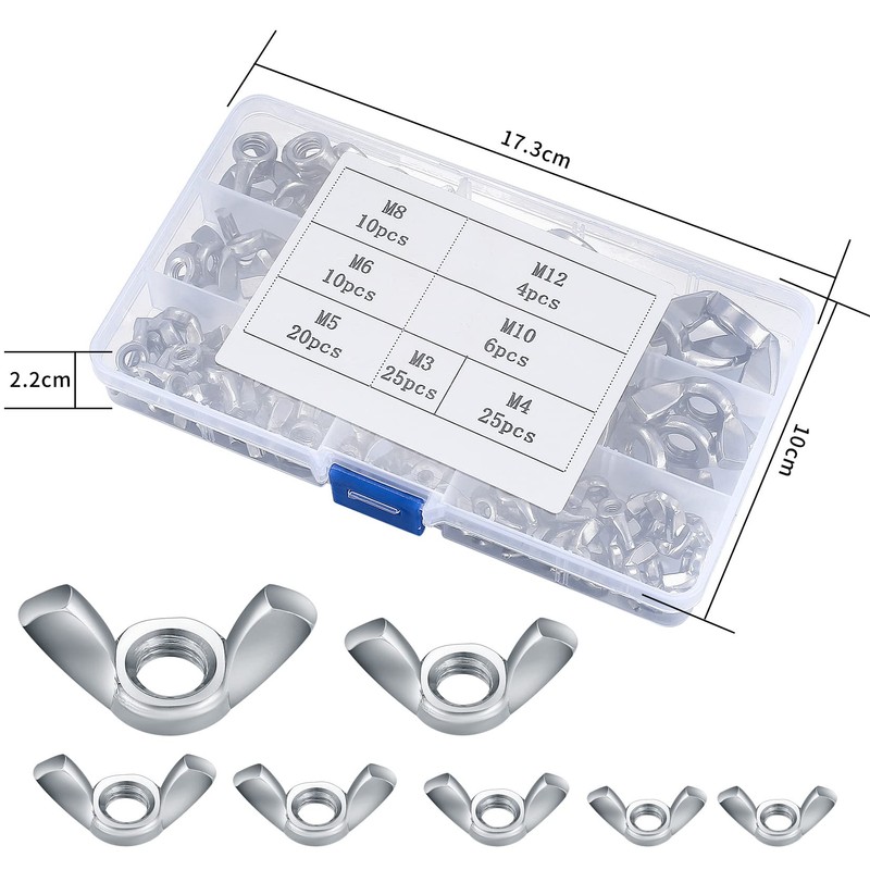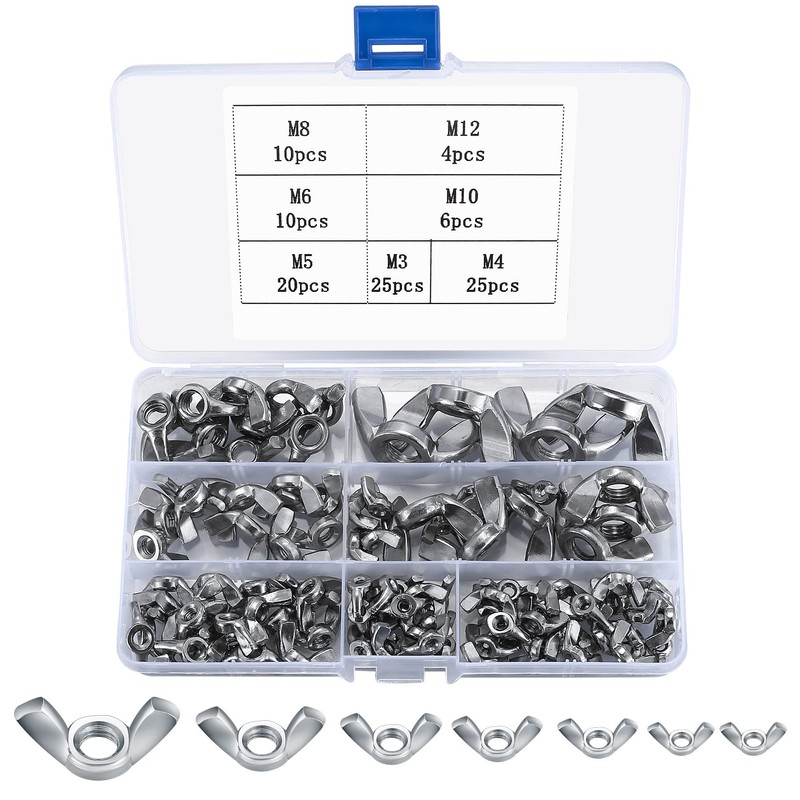 • Convenient Storage: All wing nuts are packed in a sturdy, compartmentalized plastic box, providing an organized and diverse assortment, making it easy to open, search, and carry around wherever needed.