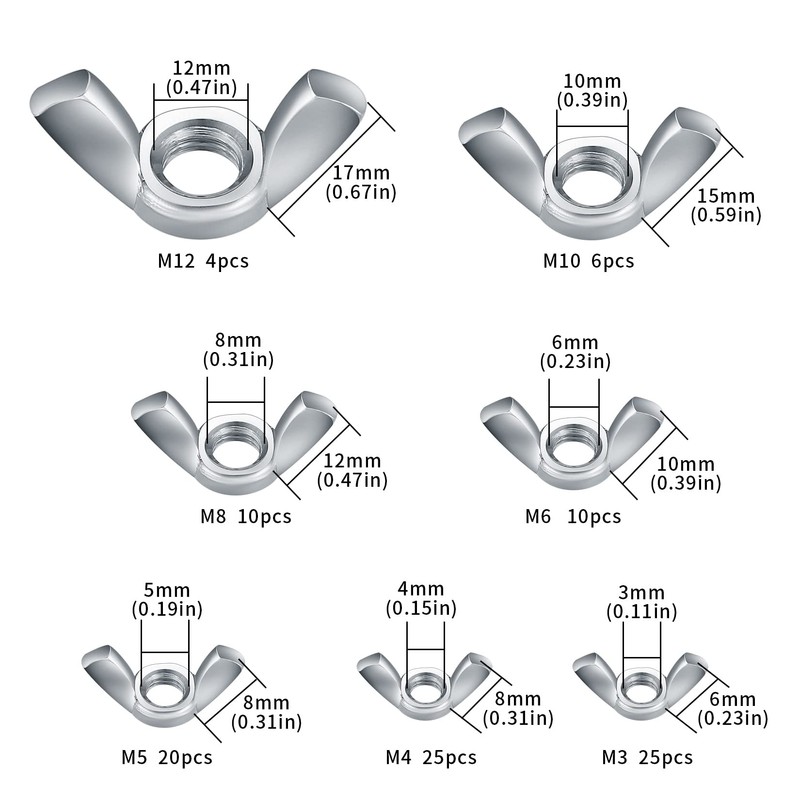 • Superior Quality Material: Our assorted wing nuts are made of top-notch stainless steel material, providing high strength and excellent corrosion resistance in various environments, ensuring long-lasting durability for extended use.