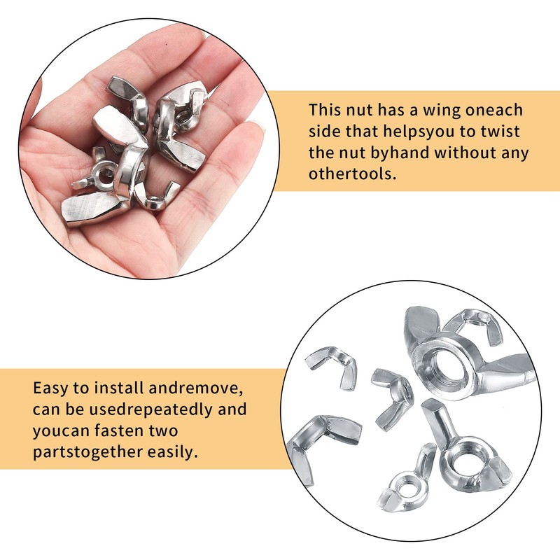 - These butterfly wing nuts are made of high quality stainless steel material, which is sturdy and durable for long time using.
