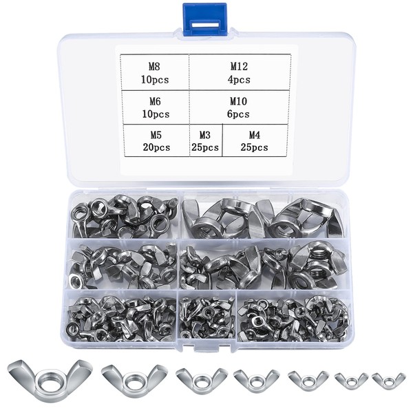 130 Pcs Wing Nuts Assortment Kit, Stainless Steel Wingnuts, Butterfly Nuts Wing Nut Sets for DIY Tools, Electronic Devices Hardware, M3/M4/M5/M6/M8/M10/M12