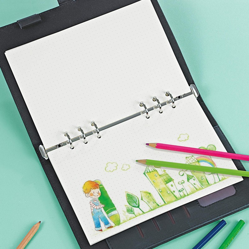 - Standard Loose-leaf Refills: International 6-rings dotted paper, easily take out and in, double side clear black dot paper.