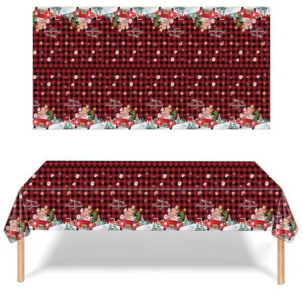 137*274cm Christmas Disposable Tablecloths,Merry Christmas Red Plaid,Snowflake,Car Xmas Tablecloth Waterproof Tablecloth,Rectangle Table Cloths Party for Xmas Dinner Winter Holiday Party Decorations