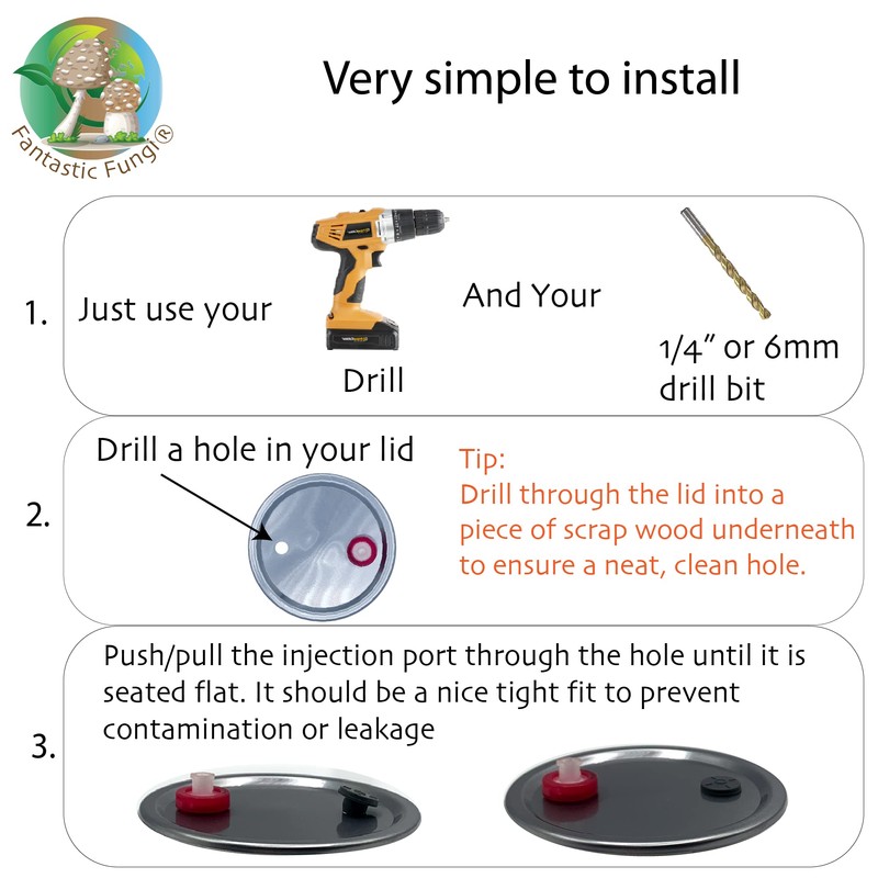 13mm Self Healing Injection Port (1/4") Qty 100 - Safe for 15psi Sterilization - Butyl Rubber - Medical Grade - Perfect for Mushroom Cultivation - Grain Jars, Liquid Culture Jars