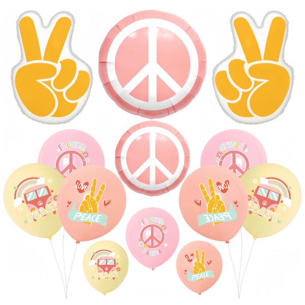 13Pcs Groovy Balloons Retro Hippie Decor/Peace Sign Groovy Hand Balloons for Groovy Birthday Party/Peace Sign Decor/Peace & Love 60's 70's Groovy Retro Decor/Girls Spring Birthday Party