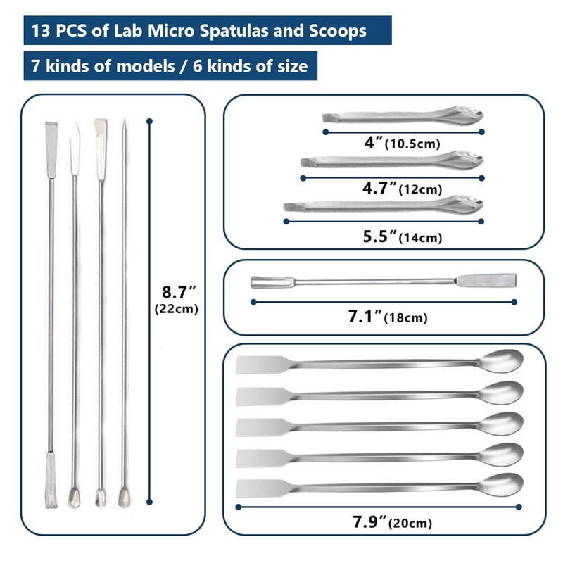 - Package Includes: 1 set contains 13pcs micro spoons and spatulas.