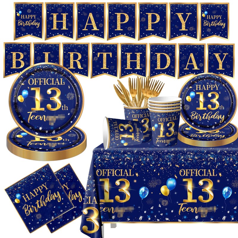 - 💙【APPLY TO】 Our happy birthday decorations tableware set is an excellent addition to the 13th birthday dinner decoration.Suitable for 13th birthday decoration,men birthday party,navy blue and gold them party.