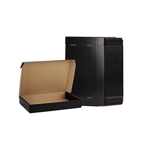 13x10x2 Inches Shipping Cardboard Boxes for Small Business, Packing and Mailing, Pack of 25, Black