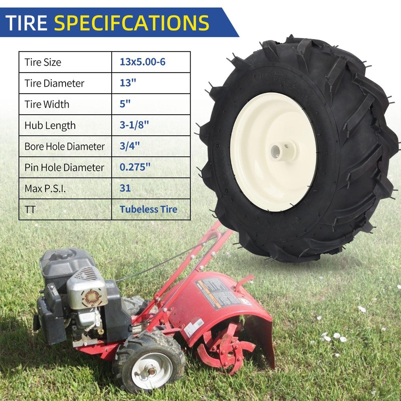 GICOOL 13x5.00-6" Tiller Tire and Wheel, 【3/4" Axle Size】, 3-1/8" Centered Hub, 13x5-6 Agriculture Super Lug Tractor & Trencher Tubeless Tire, Compatible with Craftsman & Troy-Bilt Tiller, 1 Pack