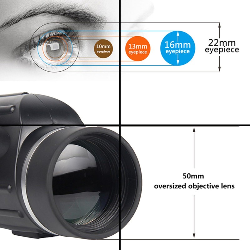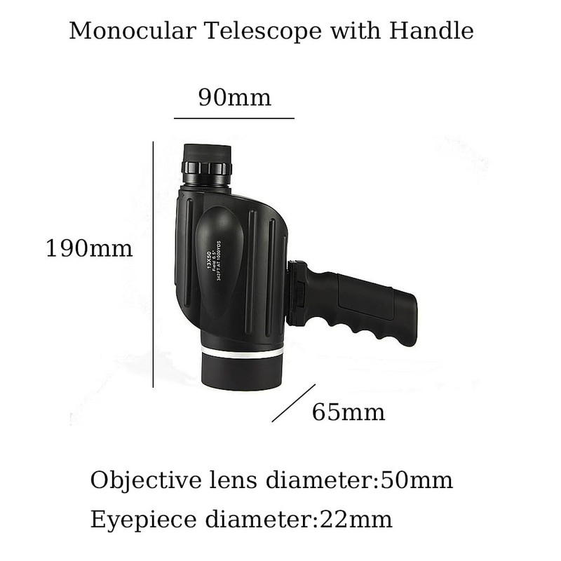 - 【13x50 Monocular Telescope】13x magnification monocular, high light transmittance, clear imaging; objective lens diameter 50mm, eyepiece diameter 22mm, size 190mmx90mmx65mm, compact telescope, easy to carry