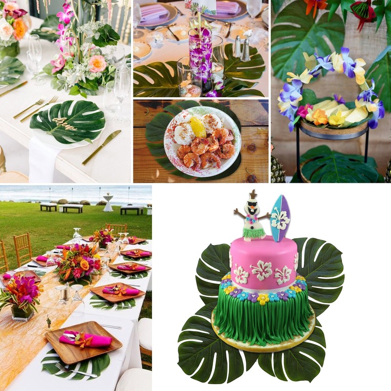 - TROPICAL - These large tropical leaves have that Authentic Hawaiin Environment Feel. Easily decorate your party and bring it to life with these fun tropical leaves!