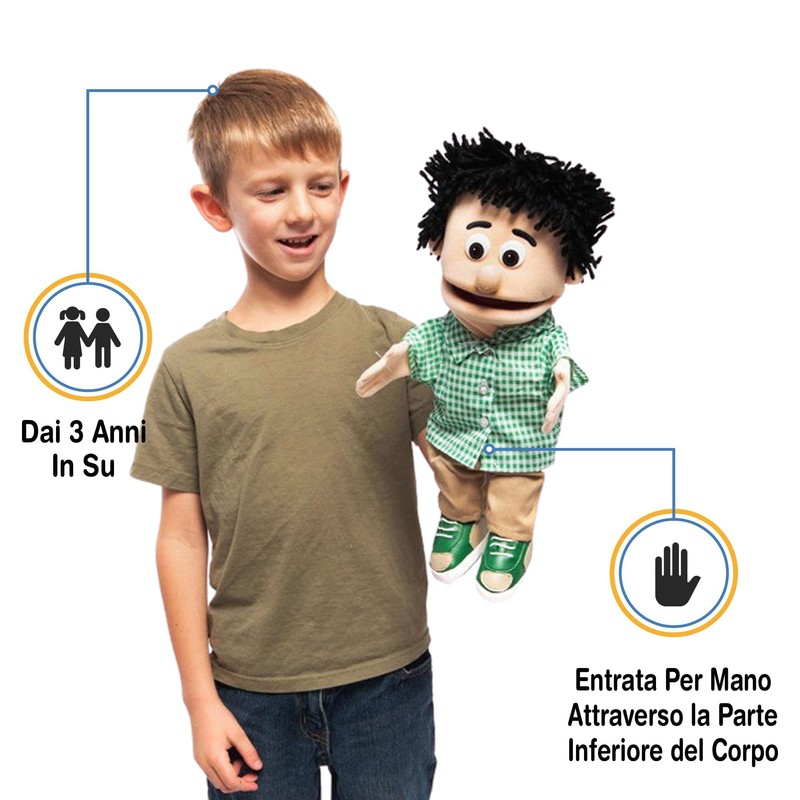 - Easy to move mouth and arms. Hand entry through the bottom of the puppet.