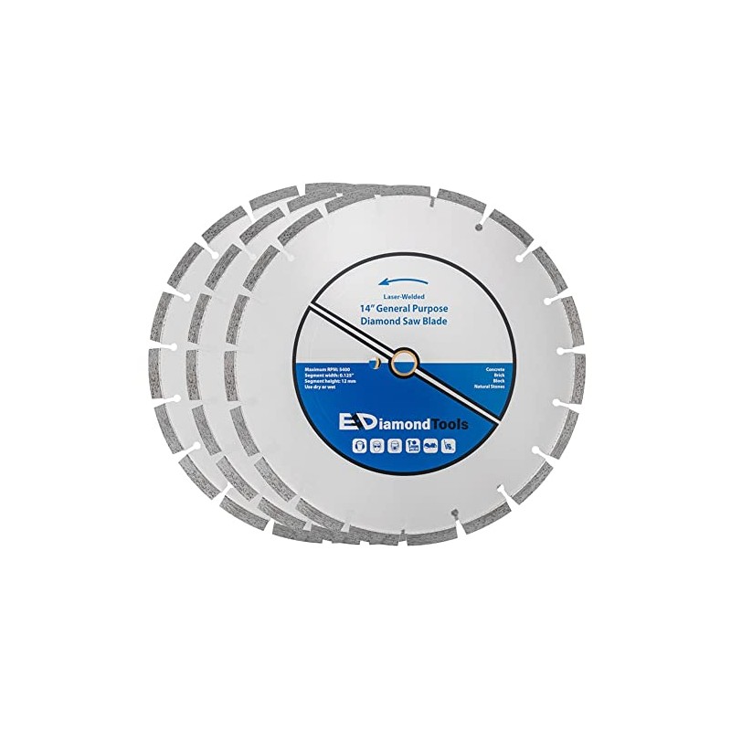 - MULTIPURPOSE - 14" laser welded diamond saw blades designed to cut concrete, reinforced concrete, brick, block, and other masonry
