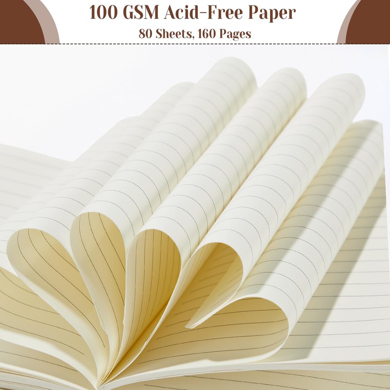 - Quality Paper: the journals bulk made with nice 100 GSM paper in eye protection beige color with smooth touch; The pages are thick enough, compatible with most kinds of pens, such as fountain pen, color pen without ghosting and bleed-through; The binding is sturdy and won't let the pages peel off