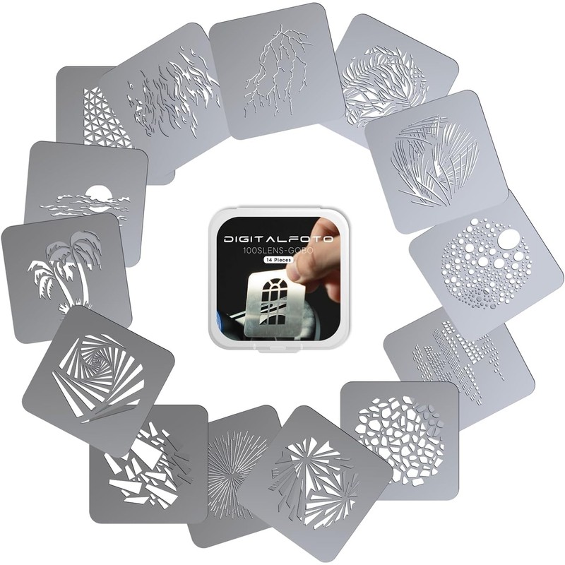 14 Pcs GOBO Kit, Metal Plate Works with FS-100SLENS 100SLENS-SE Optical Snoot to Create Different Lighting Effects Projection Photography Spotlight Attachment