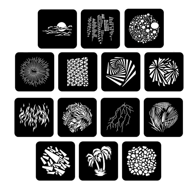 - 14 environmental pattern gobos designed for spotlight attachment and FS-100SLENS 100SLENS-SE optical snoot