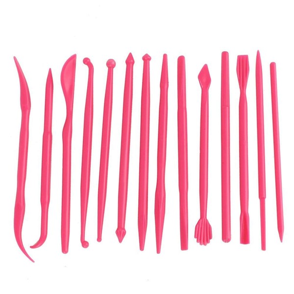 14-Piece Modelling Tool Set, DIY Modelling Set Plastic Clay for Shaping and Shaping, Plastic Clay Tools, Ceramic Tool Set (Rose Red)