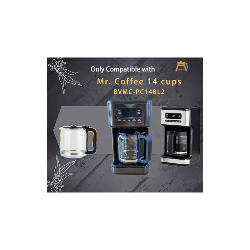 14 tazas de caf de vidrio de repuesto para Mr. Coffee 14 tazas BVMC-PC14, sin BPA, apta para alimentos, mango resistente al calor