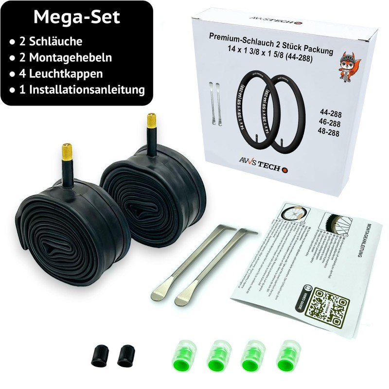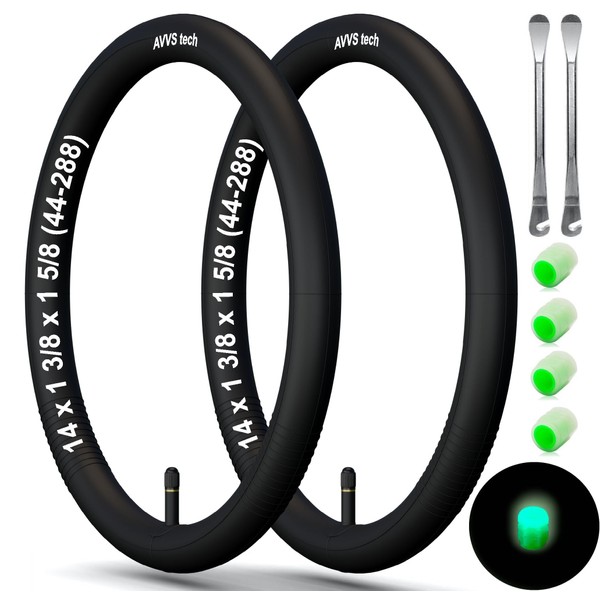 14 x 1 3/8 x 1 5/8 44-288 Pushchair Inner Tube 14 Inch with Straight Valve with Mounting Levers | Pack of 2 | Scooter Tyres Pram Tricycle Balance Bike Trailer