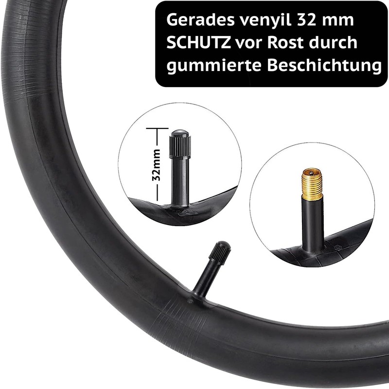 - Straight valve: the rubberised valve holds well on the rim and makes it easier to replace the hose.