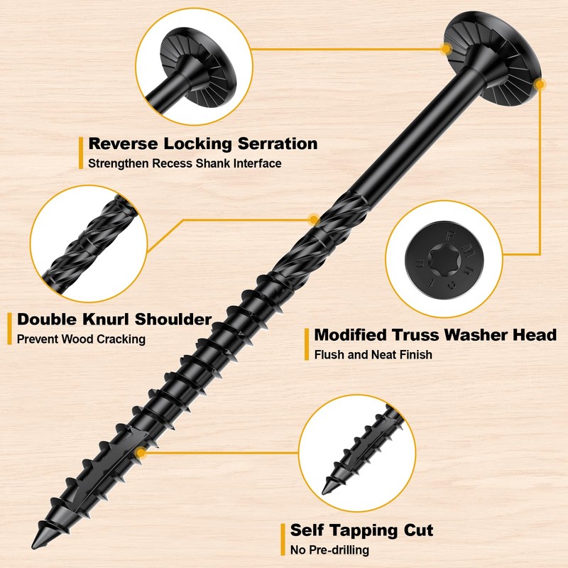 - SLEEK DESIGN: The modified truss washer head design guarantees a sleek finish, elevating the appearance of your woodworking projects. The T30 star drive style ensures secure and efficient fastening without slippage.