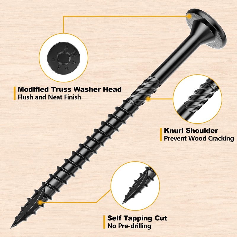 - SLEEK DESIGN: The modified truss washer head design guarantees a sleek finish, elevating the appearance of your woodworking projects. The T30 star drive style ensures secure and efficient fastening without slippage.