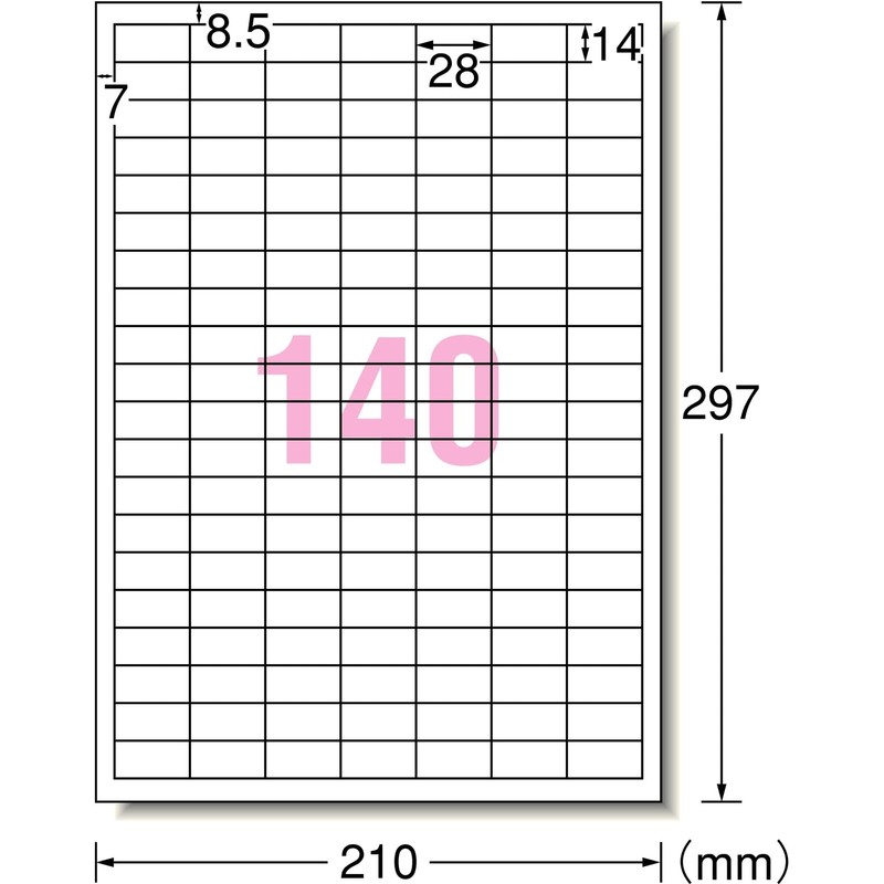 • A4 size for price 140 sides/sheet size: A4 size (8.3 x 297 mm) / Label size: 1.1 x 0.6 inches (28 x 14 mm) (7 rows x 20 rows)