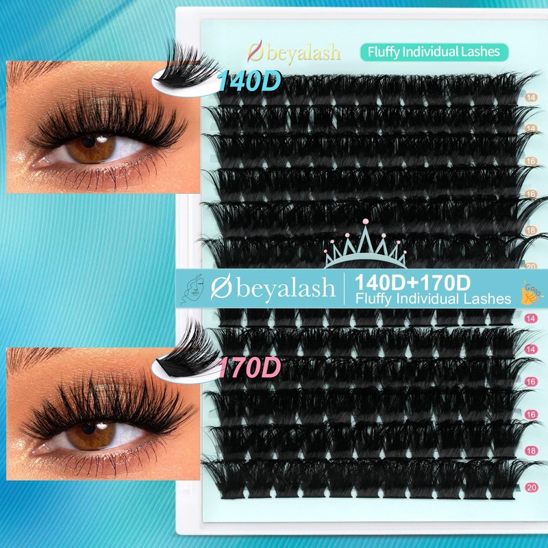 140D+170D Fluffy Lash Clusters 144pcs Eyelash Individuals D Curl Individual Eyelashes Cluster DIY Lash Extensions at Home by Obeyalash (140D+170D D Curl 14-20mm)