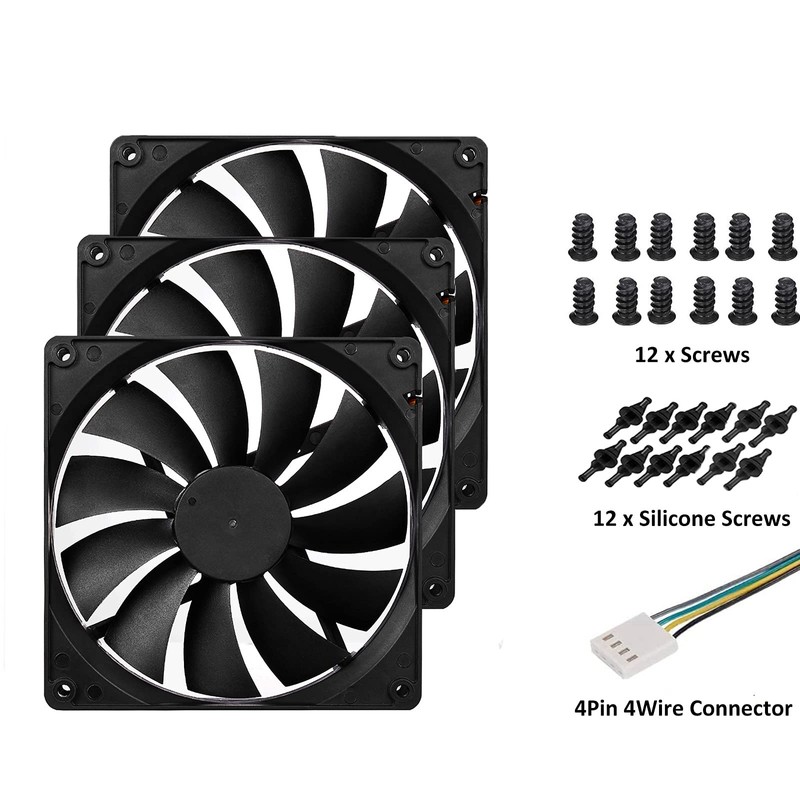 • PACKAGE INCLUDED: 12 volt 140mm long life sleeve bearing pwm case fan x 3 ,Silicone screws x 12, fan screws x 12.