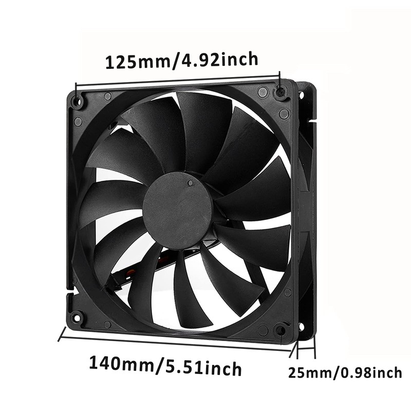 • STANDARD CASE FAN:140x140x25mm 140mm pwm fan quiet silent 12v dc 0.21A cooling fan. Fan speed can be adjusted by using different voltage (5-12V) ,it can work at lower voltage to achieve silent effect.