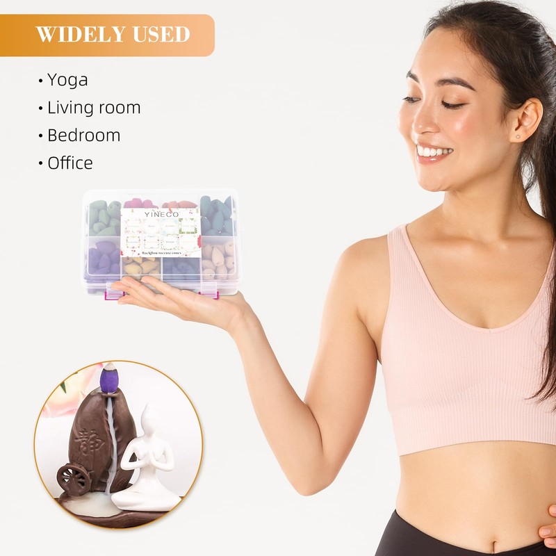- Suitable place: the backflow incense cones needs to be used with the backflow incense burner; you can put them in the bedroom, office, yoga room, meeting room and other indoor places with less wind