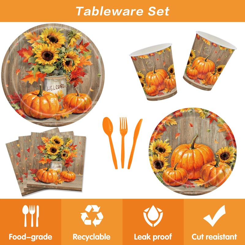 - FESTIVE DESIGN: Beautiful pumpkin-themed tableware brings harvest season charm to your Thanksgiving gathering