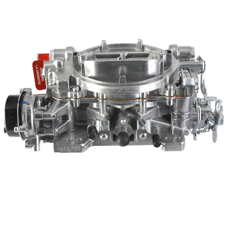 - This 1411 Performer 750 cfm, 4-barrel, square bore, electric choke carburetor features two-piece aluminum construction for cooler operating temperatures and less warping. No gaskets below the fuel bowl level reduce leaks, and the absence of plastic parts or power valves eliminate unwanted blow out.