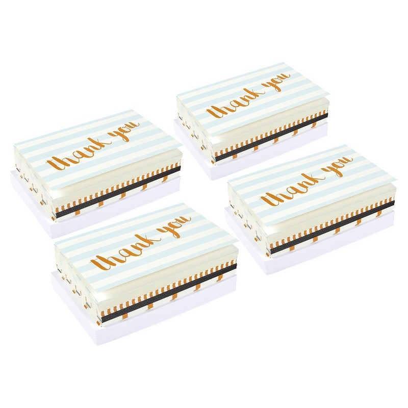 • Thank You Cards with Envelopes Set: This stationery bulk pack contains blue and gold gratitude note cards, 144 thank you notes and 144 corresponding white envelopes