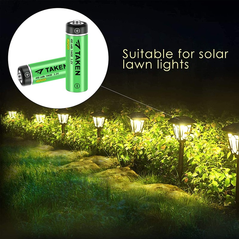 - Versatile Battery - TAKEN 14430 LiFePO4 battery Compatible with outdoor solar lights, Tooth Brush, Shaver, Home Security Systems, Digital Cameras, Mobile mouse or keyboard.