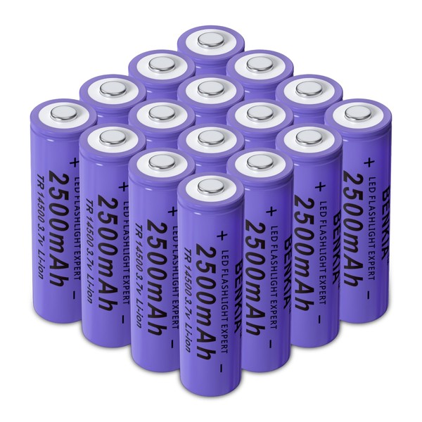 14500 Rechargeable Battery 2500mAh 14500 Battery 3.7Volt Lithium Batteries Button Top 16 Pack for Headlamp Flashlight