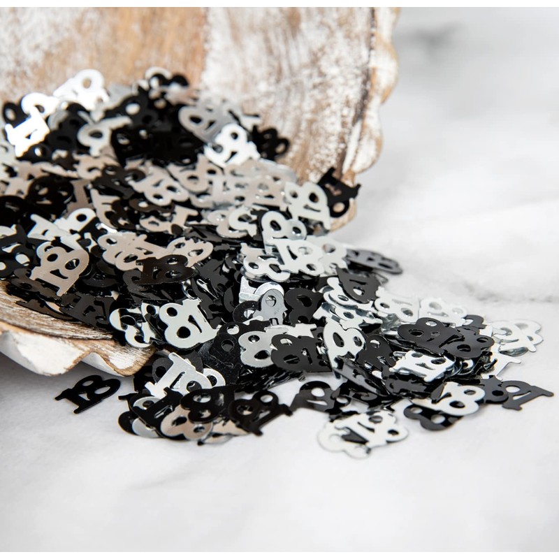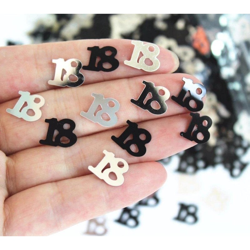 - 🎊 Pack Includes: Each bag contain 14 gram black and silver confetti, sparkling assortment foil confetti Number 18 Design.