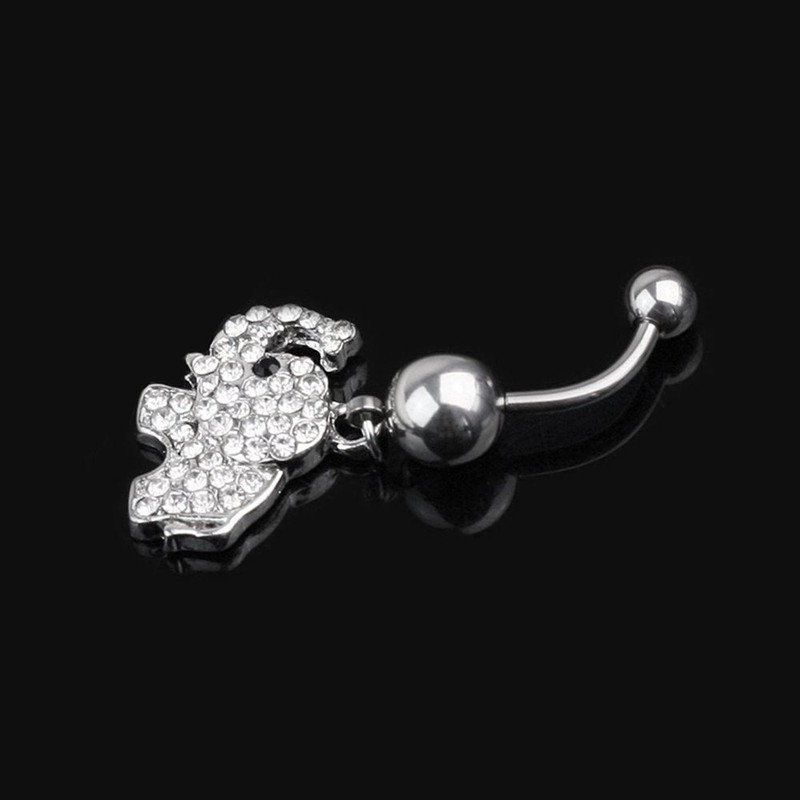 14G Stainless Steel Clear Crystal Elephant Dangle Navel Belly Button Ring Bar